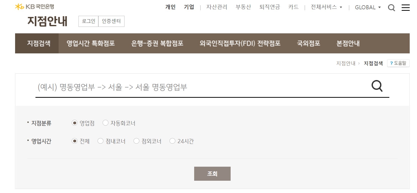 국민은행 지점검색 메뉴를 통해서 전국 국민은행 위치와 연락처를 검색해 보실 수 있습니다.