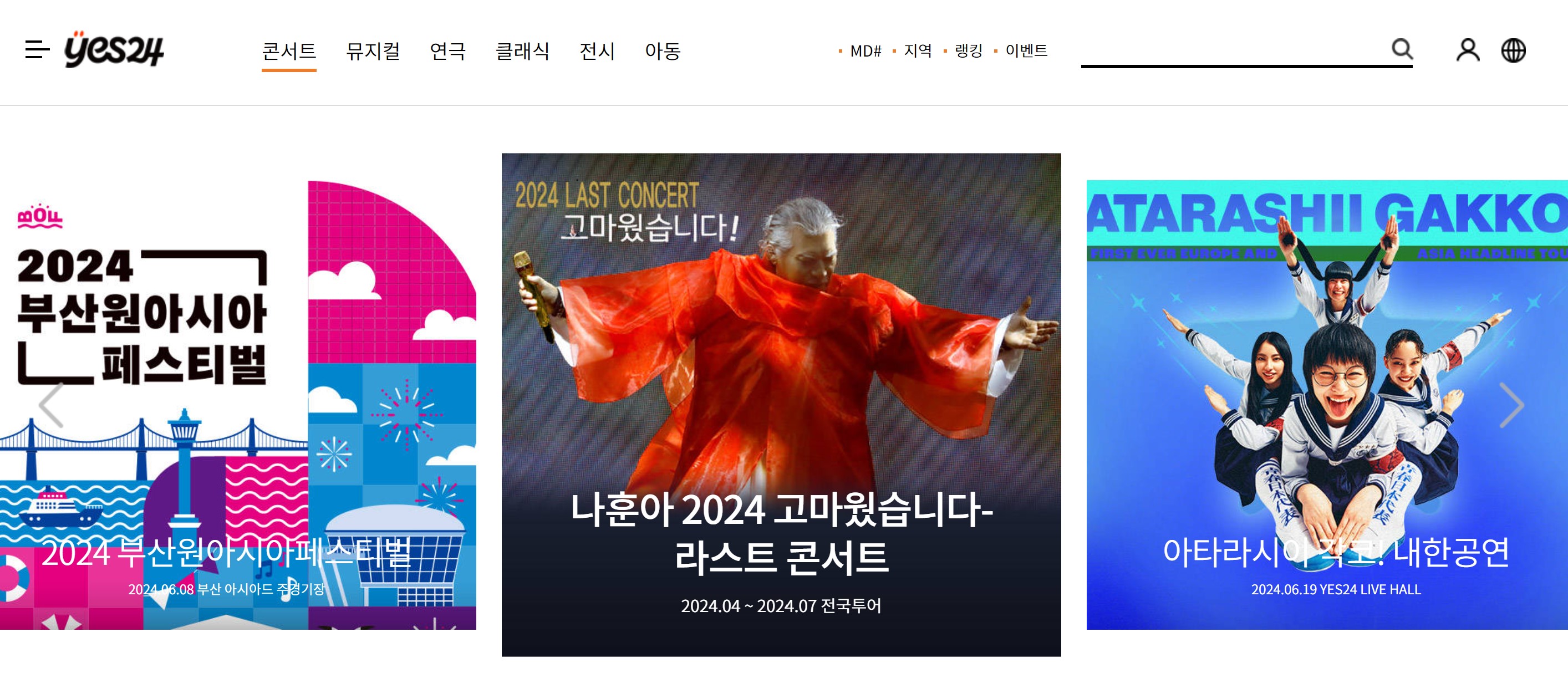 1. YES 24 티켓 홈페이지 접속