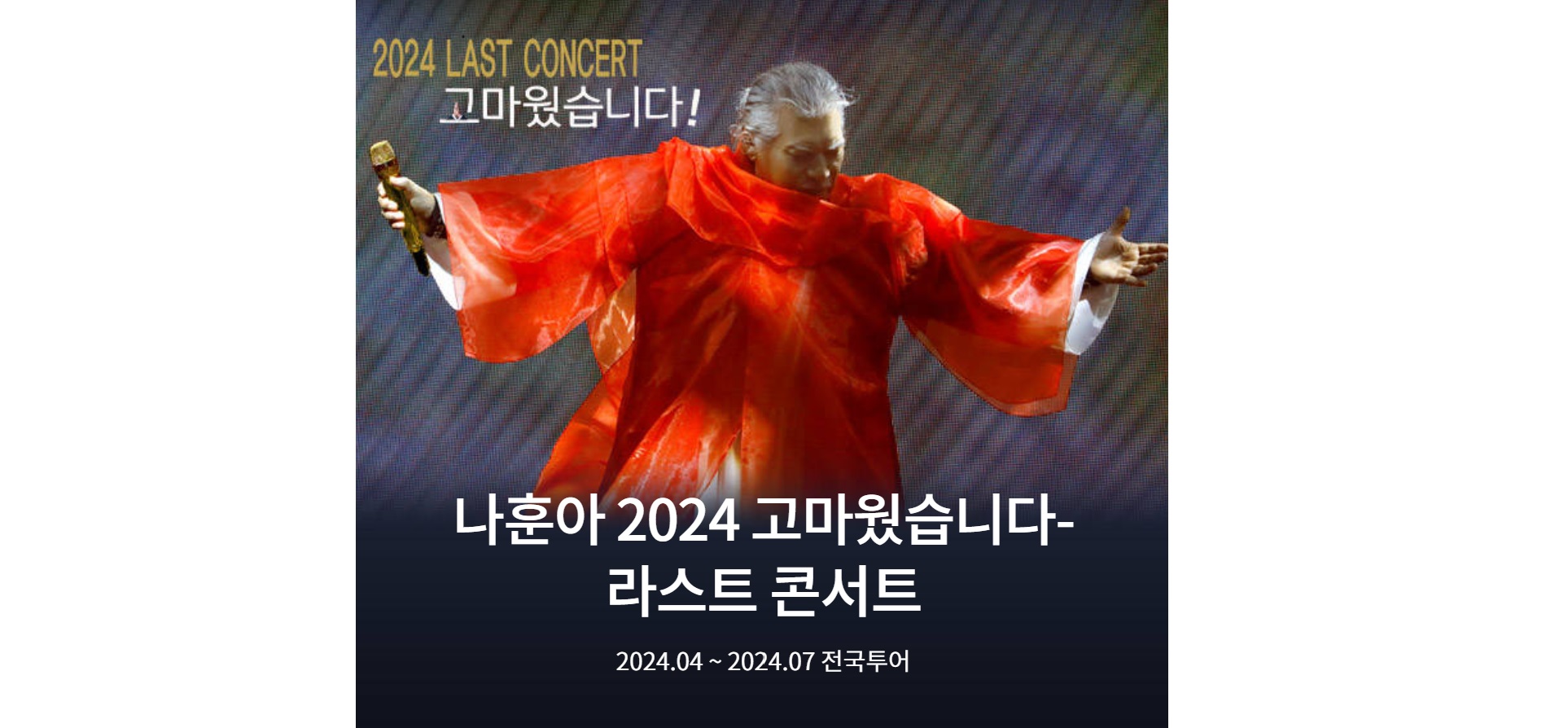 2024 고마웠습니다-라스트 콘서트는 4~7월 동안 인천, 청주, 울산, 창원, 천안, 원주, 전주 등에서 열릴 예정입니다. 이번 공연을 통해 나훈아는 가요계에서 은퇴할 것으로 보여, 더 큰 관심을 보이고 있는데요.