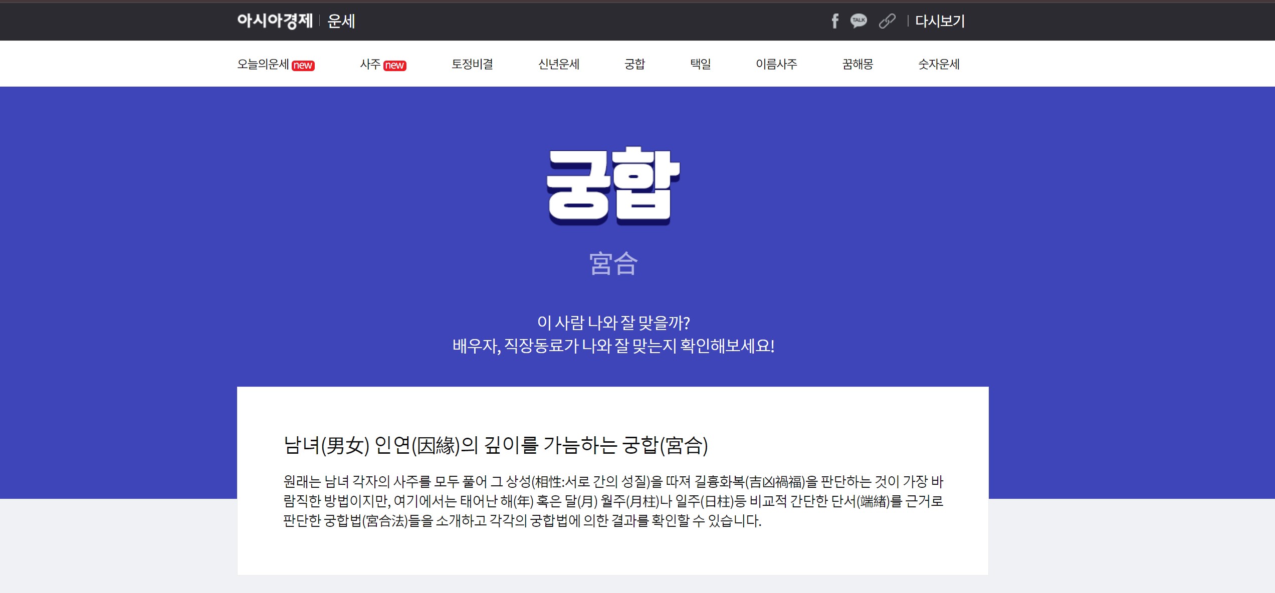 아시아경제의 궁합 사이트는 네이버 무료 궁합 서비스 중에서도 매우 인기 있는 사이트 중 하나입니다.