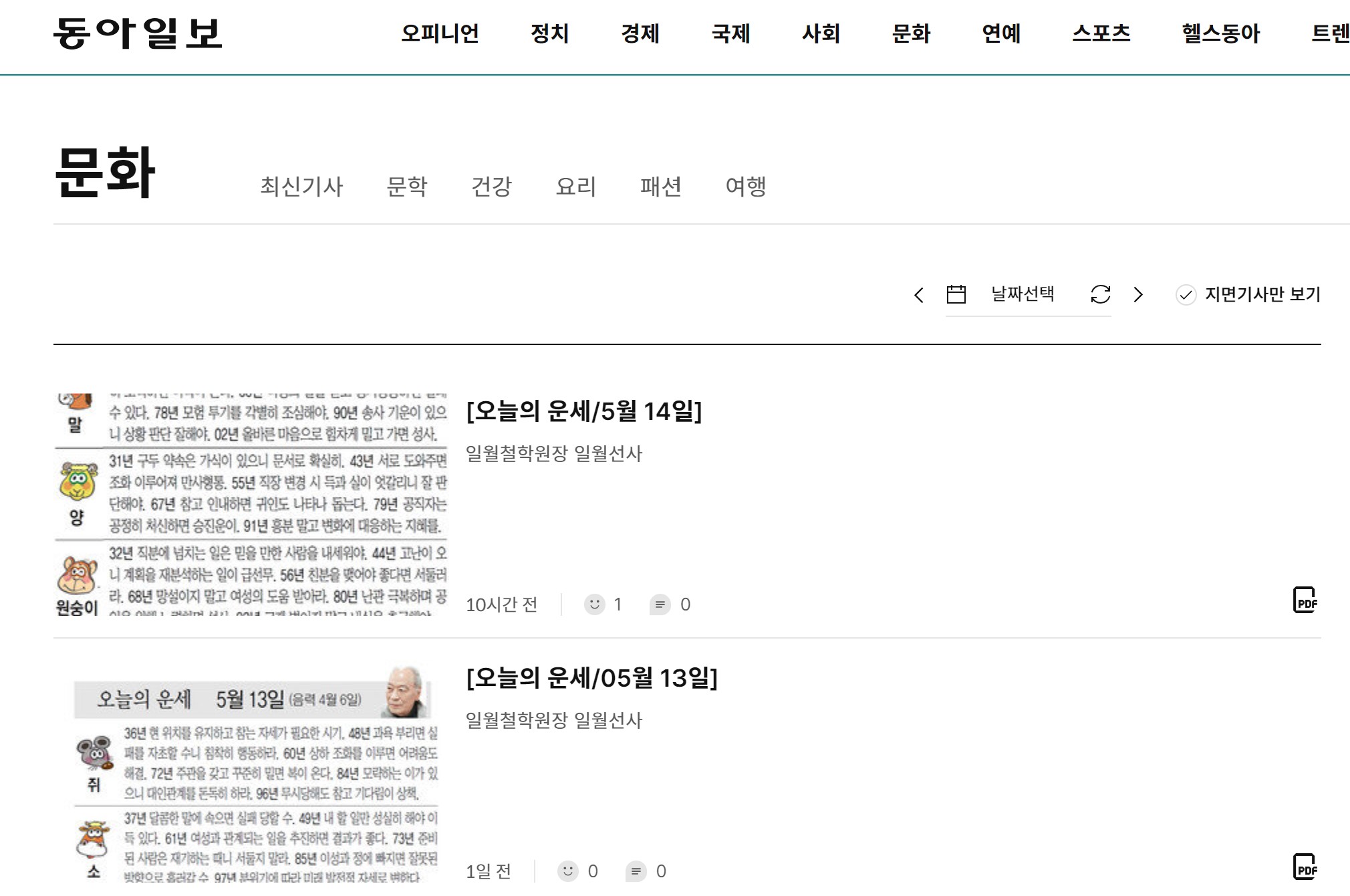 동아일보 오늘의 운세를 확인하는 방법은 동아일보 홈페이지에 접속하여 확인할 수 있습니다.