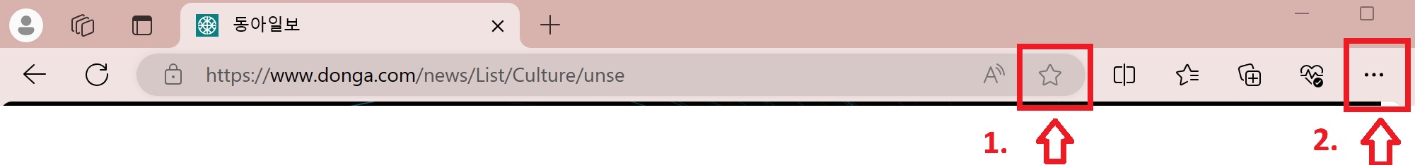3. 즐겨찾기 등록이 완료되면, 오른쪽 점 세 개 버튼을 클릭하여 '북마크 및 목록' 메뉴에 동아일보 항목이 생깁니다.