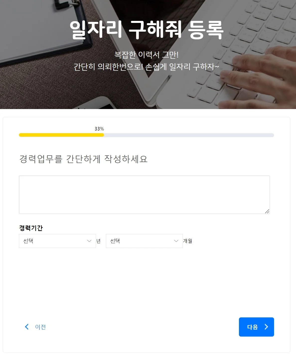 2. 경력업무를 간단하게 작성합니다. 경력기간은 선택하지 않아도 다음단계로 넘어갑니다.