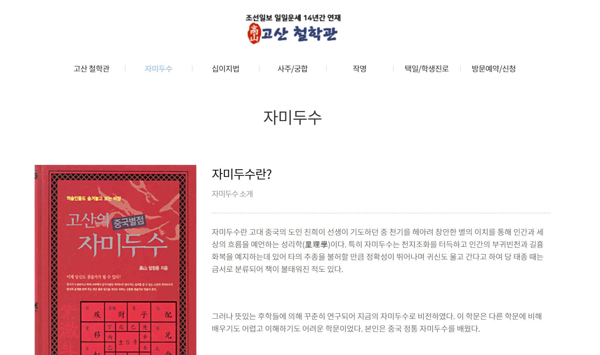 고산 철학관은 조선일보 일일운세를 14년간 연재하신걸로 유명한 고산 엄창용선생의 철학관입니다.