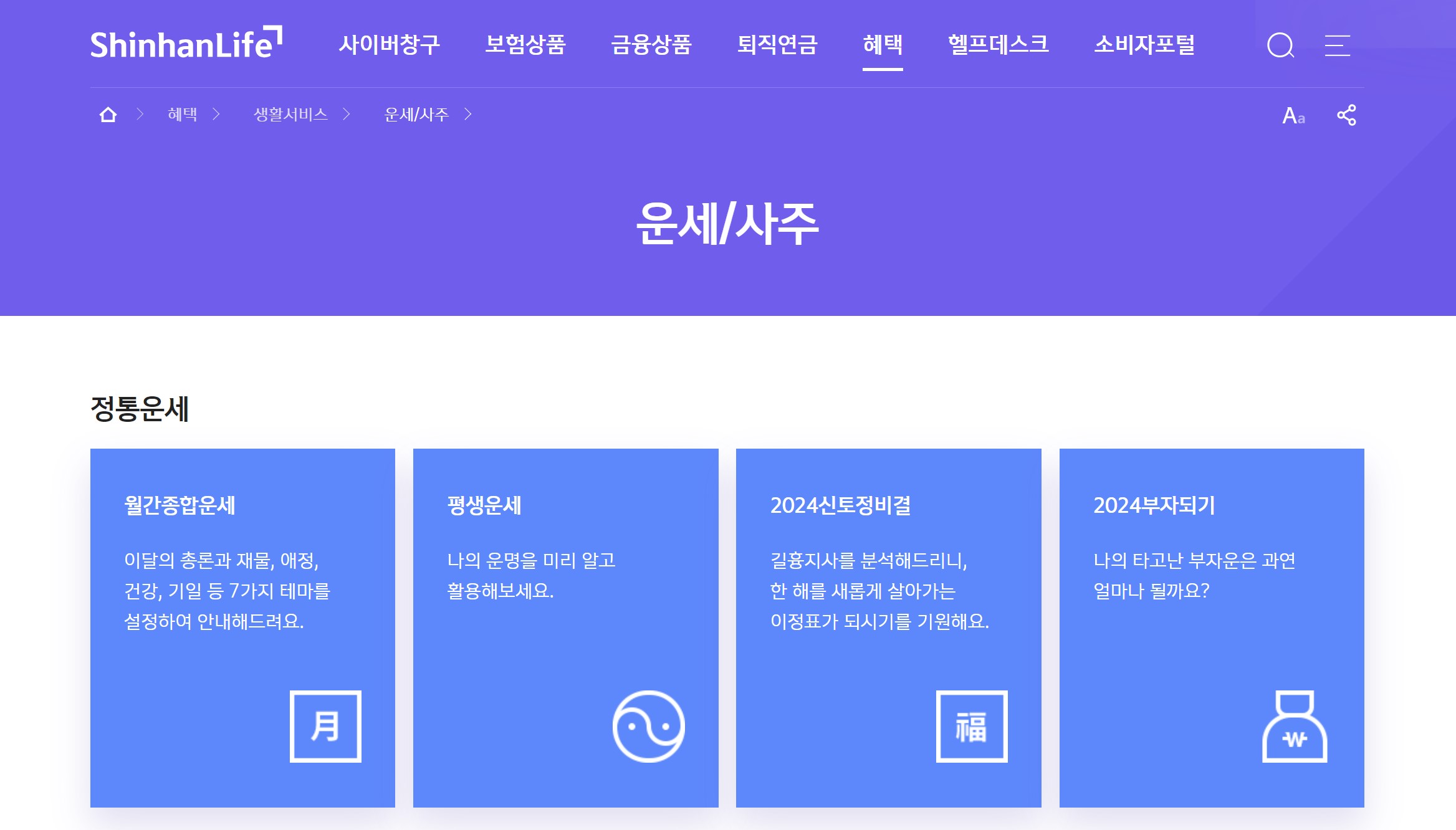 월간종합운세, 평생운세, 2024 신토정비결, 2024부 자운을 확인해 볼 수 있습니다.