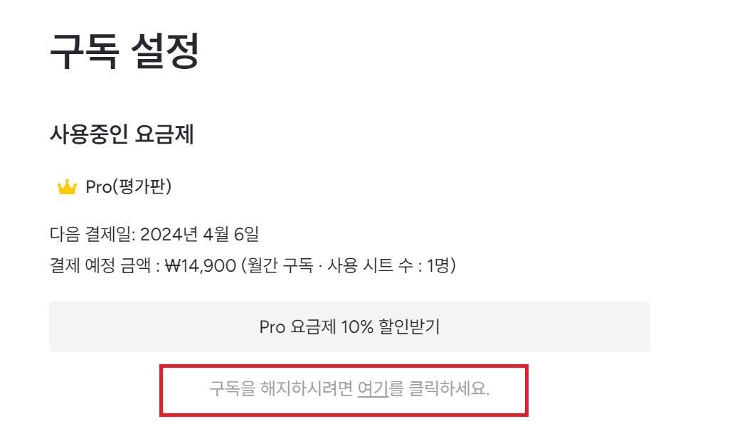 Pro 요금제 해지는 다음 결제일 이전에 해지해야 합니다.