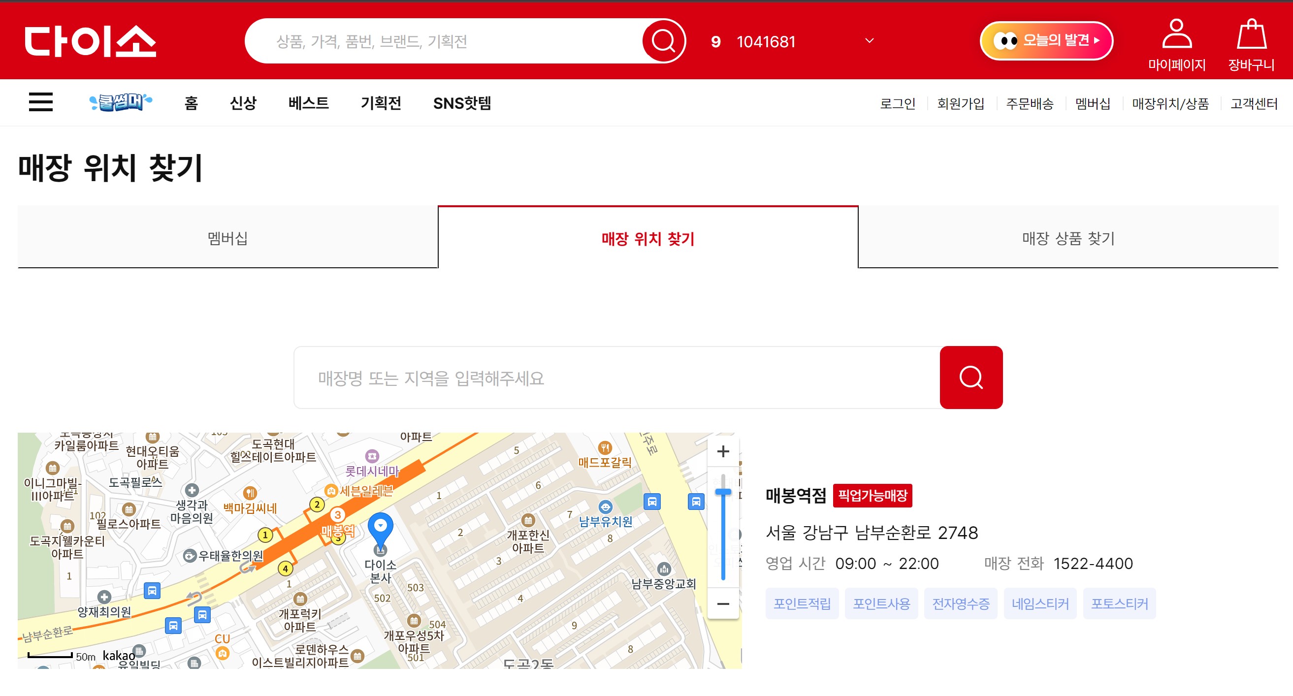 다이소 홈페이지의 매장상품검색 화면을 이용하면, 매장을 방문하기 전에 편리하게 원하는 상품을 확인할 수 있습니다. 상품명 또는 품번을 입력하고 방문할 매장을 검색하면 해당 매장의 재고 여부를 쉽게 확인할 수 있어요.