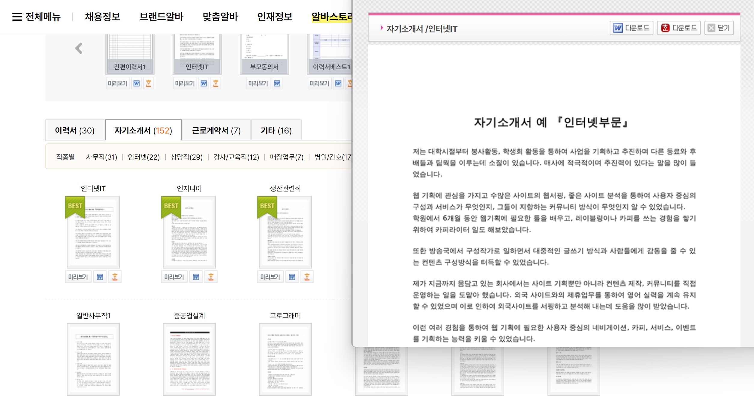 알바천국에서는 이력서와 자기소개서 양식을 무료로 다운로드 받을 수 있습니다. 작성이 어려운 분들을 위해 예시도 제공되고 있으니, 꼼꼼하게 준비하여 채용 담당자에게 좋은 인상을 남기세요.