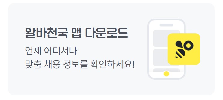 아래의 알바천국 앱 다운로드 버튼을 클릭하여 원하는 일자리 정보를 빠르게 확인해보세요.