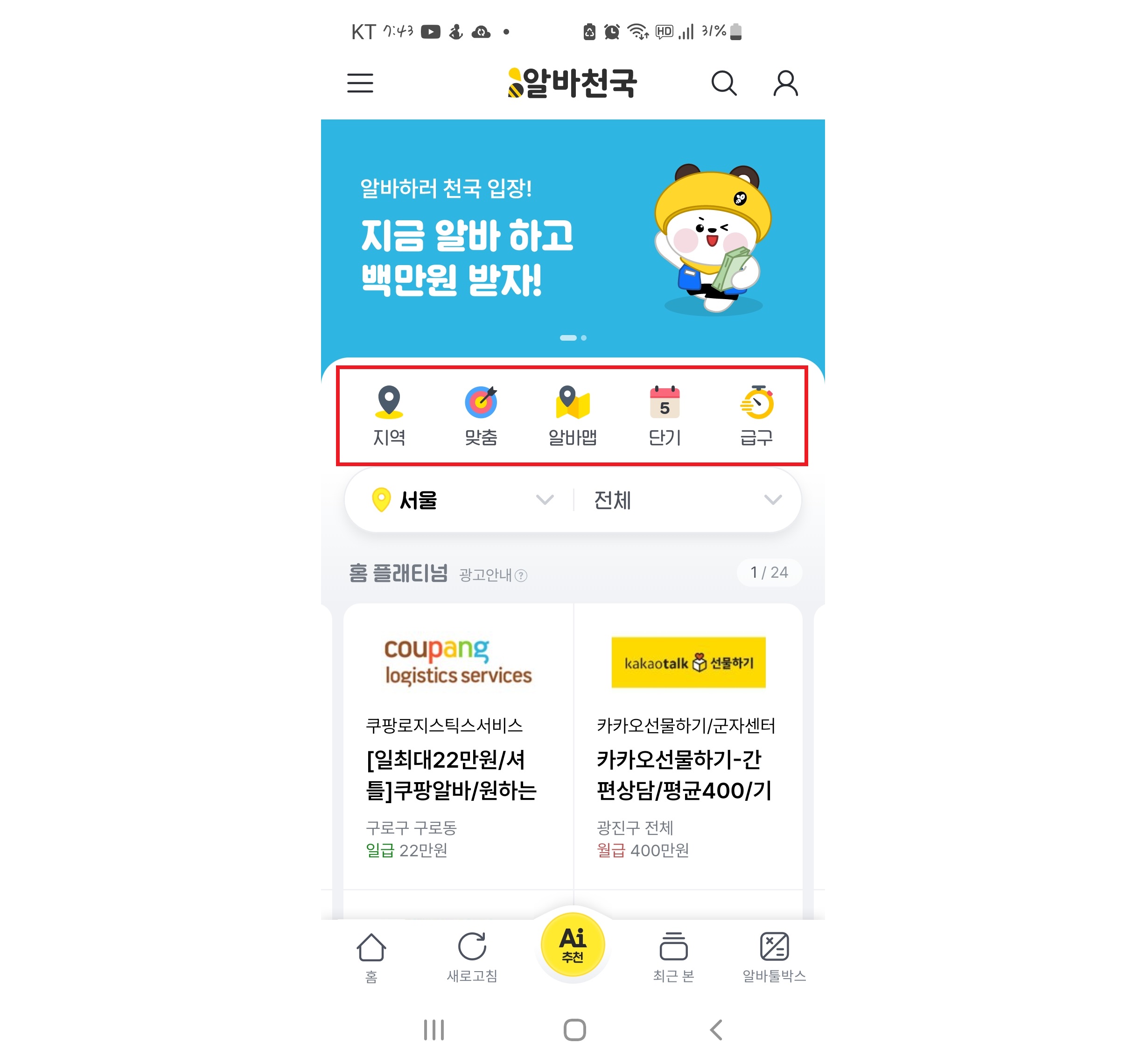 알바천국 앱 일자리 찾는 방법