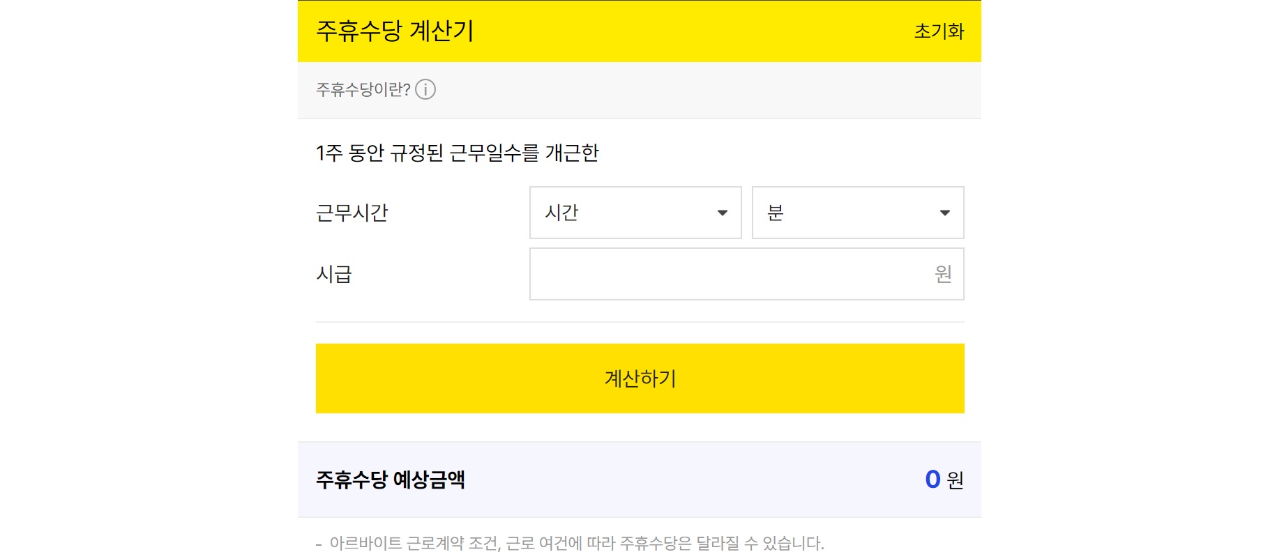 알바천국 주휴수당 계산기, 알바급여 예상금액 조회하기