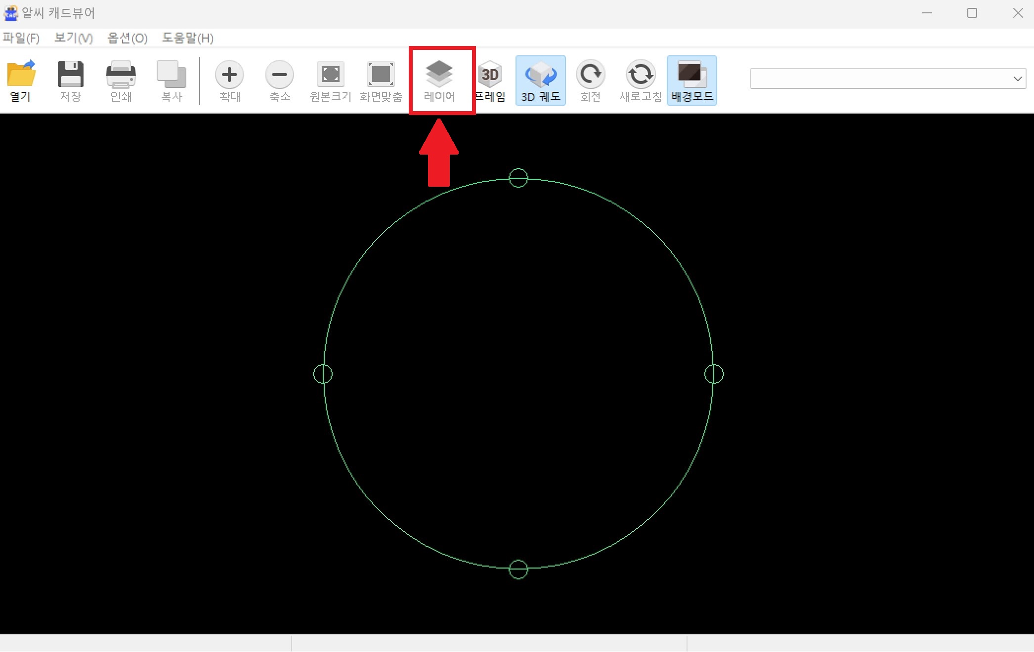 알씨 캐드뷰어는 메뉴 영역과 뷰어 영역으로 구성되어 있습니다.