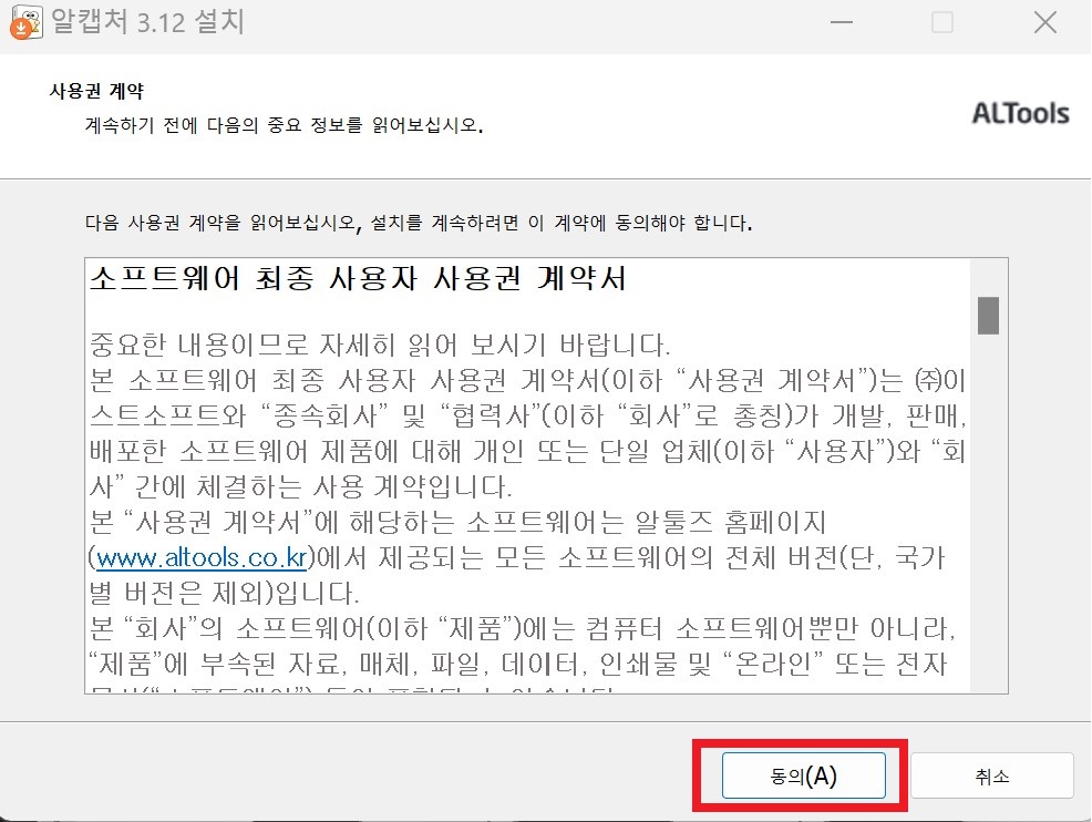 다운로드된 알캡처 exe 파일을 더블클릭하여 실행합니다.