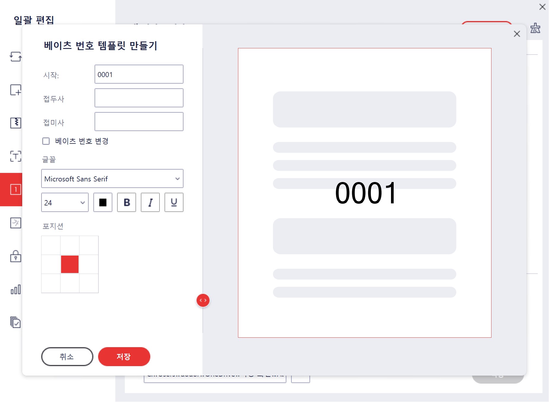 - 베이츠번호 : 문서에 페이지번호를 입력하여 문서관리가 편리해집니다.