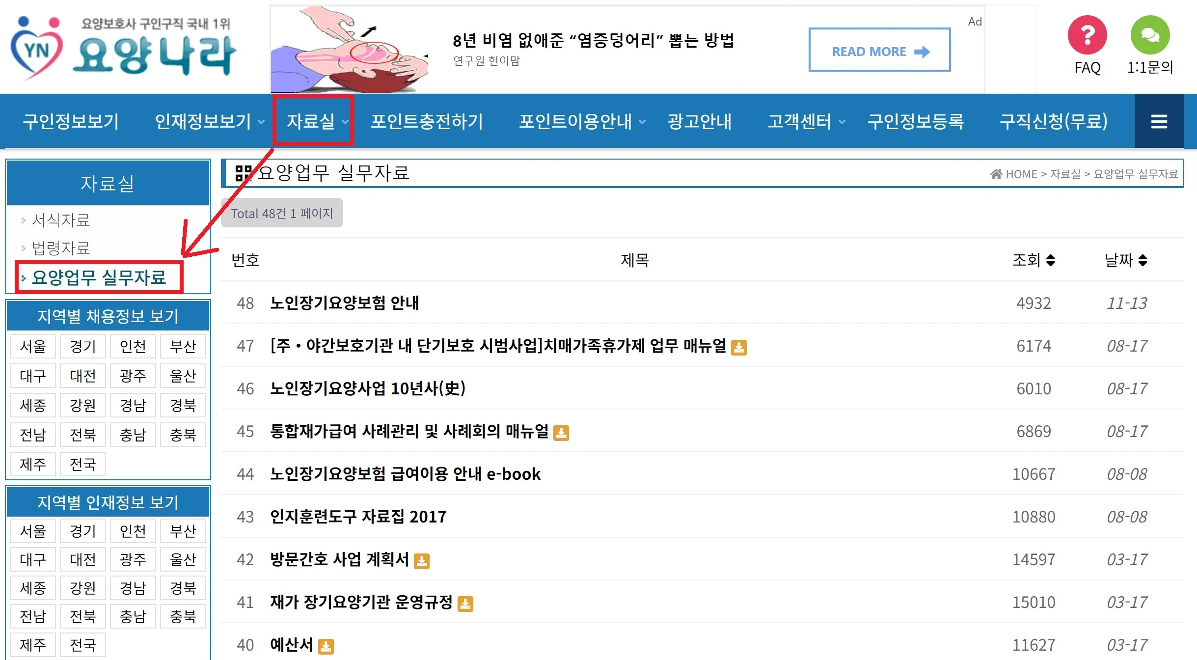 그렇다면 여러분께 꼭 추천드리고 싶은 사이트가 있습니다. 바로 '요양나라'입니다. 요양나라 사이트는 요양보호사, 간병인, 노인요양시설 등 요양업계 종사자들을 위한 다양한 채용정보와 실무자료를 제공하고 있습니다.