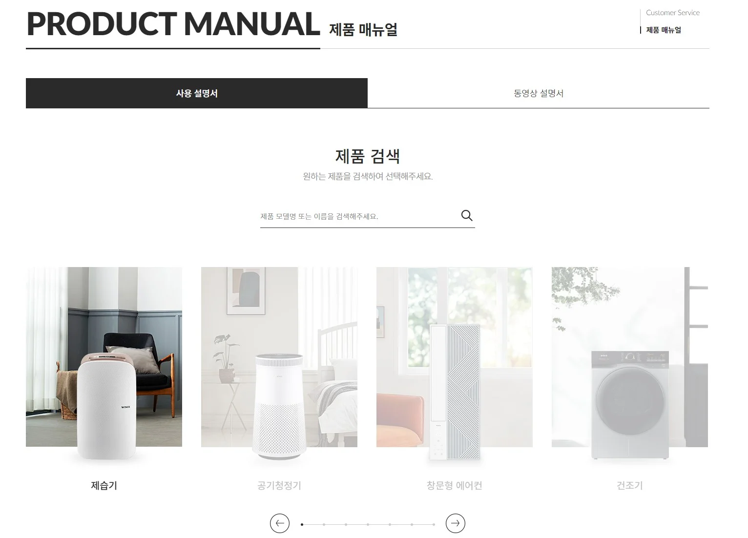 위닉스 공식 홈페이지에서는 제품별 사용 설명서와 동영상 설명서를 확인 할 수 있습니다.