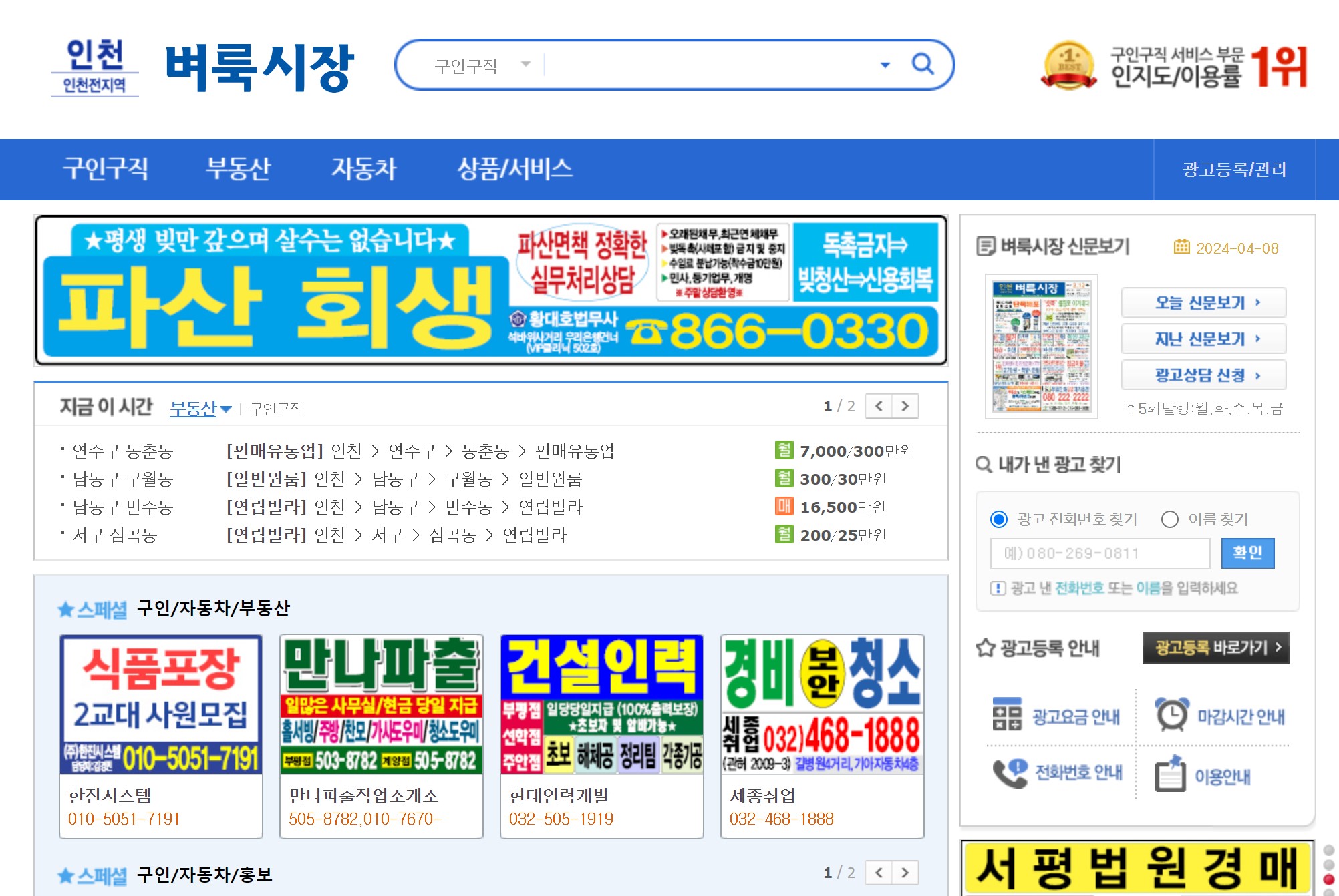 인천 벼룩시장 신문에서는 알바부터 전문직까지, 중고자동차정보와 부동산 정보까지 확인하실 수 있습니다.