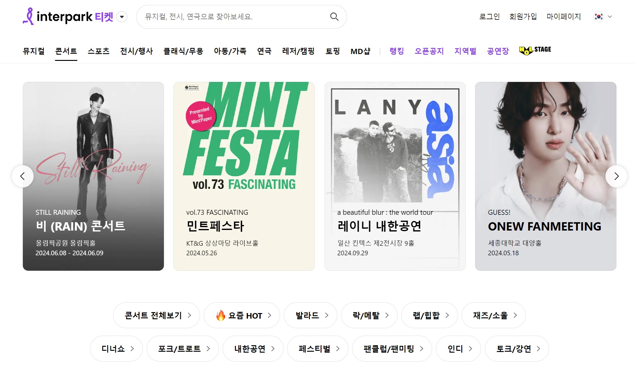 인터파크 티켓 홈페이지를 직접 검색하거나 하단에 바로가기 버튼을 클릭하여 인터파크에 접속하세요. 그런 다음, 콘서트 메뉴에서 임영웅을 입력 후 검색하시면 됩니다.