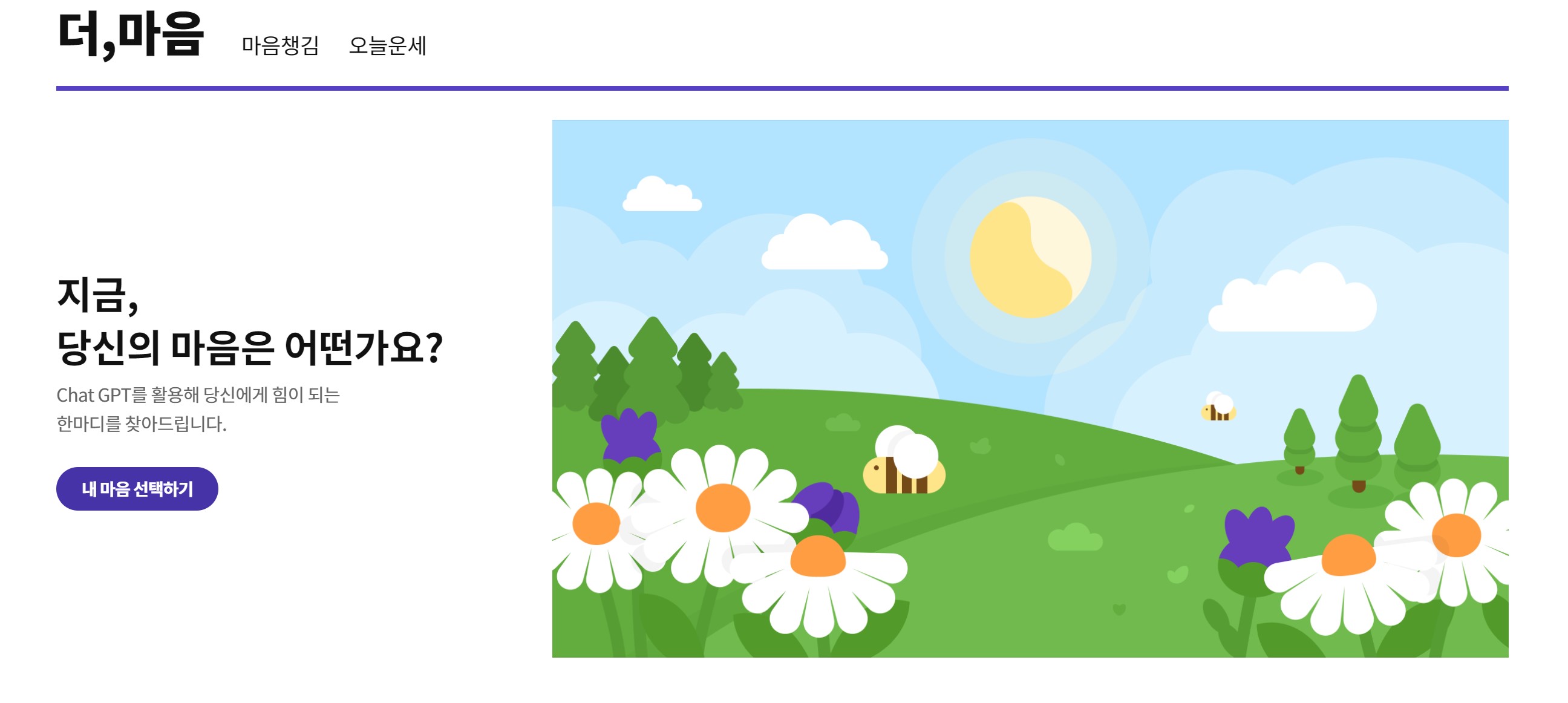 '더, 마음' 서비스를 통해 오늘의 감정을 나누고, 의미 있는 소통을 경험해 보세요.
