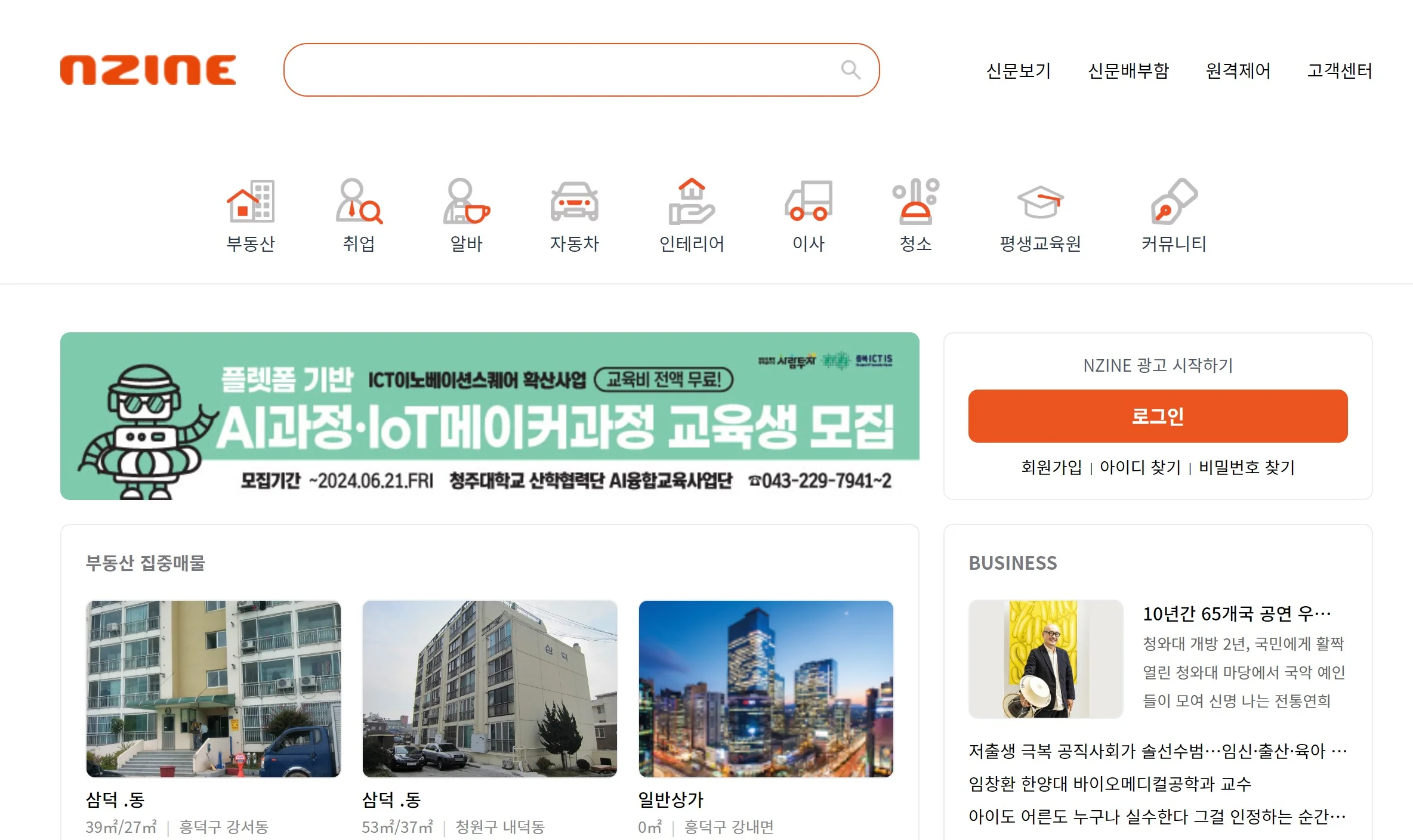 NZIE에서는 청주지역의 부동산, 취업, 알바, 자동차, 인테리어, 이사, 청소, 평생교육원, 커뮤니티 정보를 이용하실 수 있습니다.