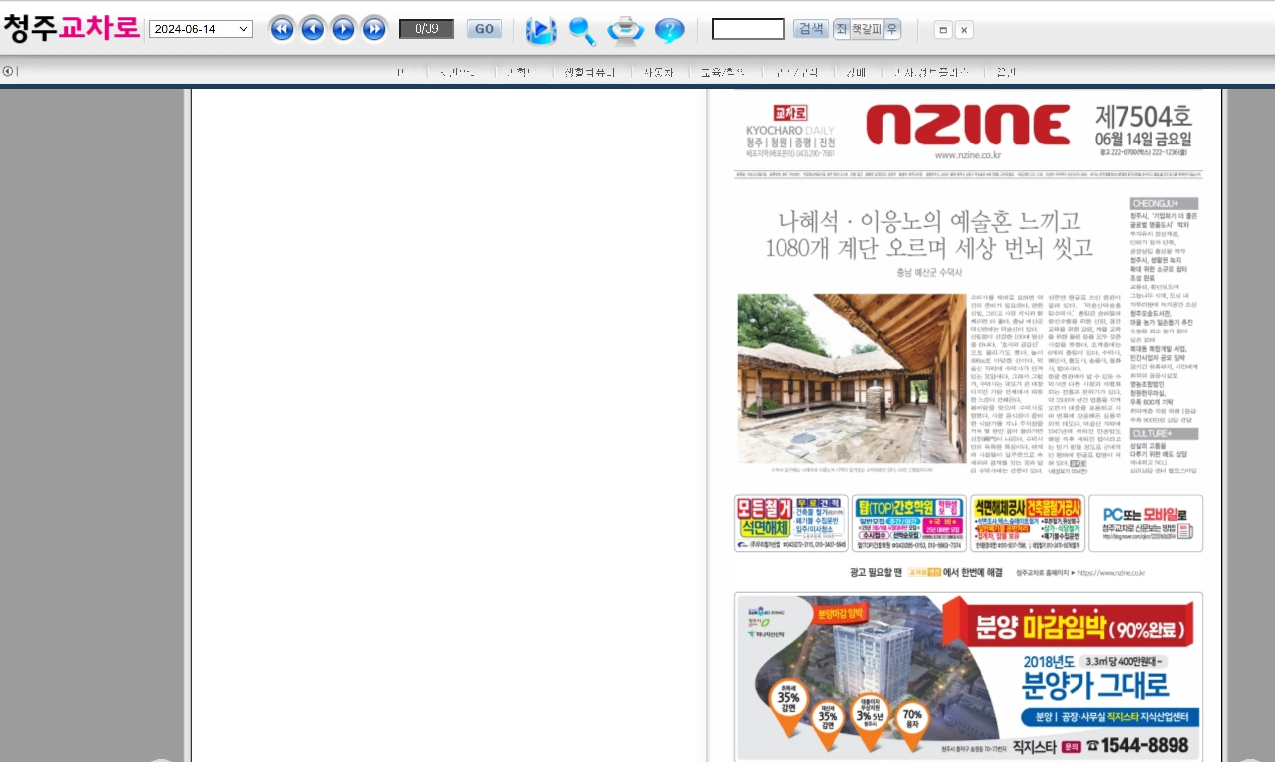 일단 청주 교차로 홈페이지 메인화면 검색창 우측의 신문보기 메뉴를 클릭해 주세요.
