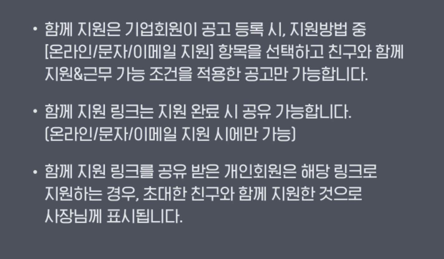 이렇게 등록된 공고는 구직자가 친구와 함께 지원할 수 있는 기회를 제공합니다.