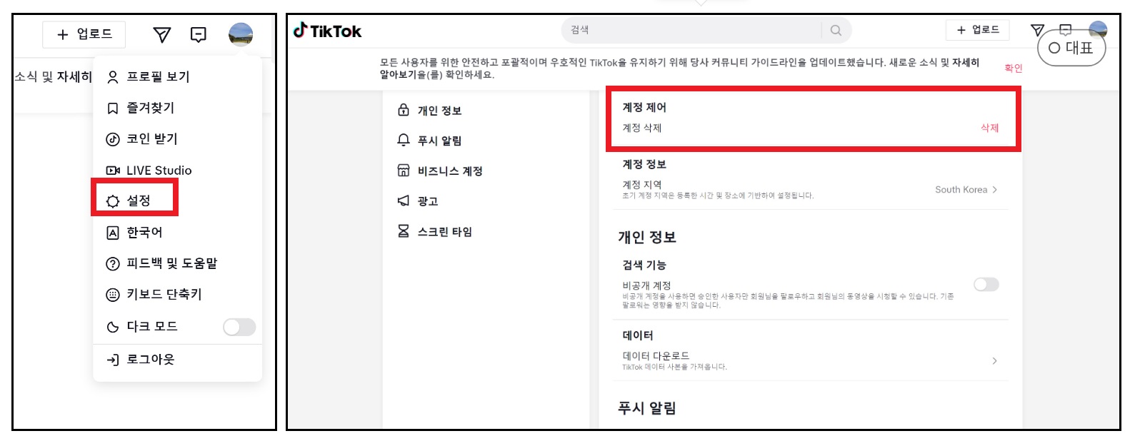 틱톡 라이트 탈퇴 - PC 틱톡 홈페이지에서 탈퇴