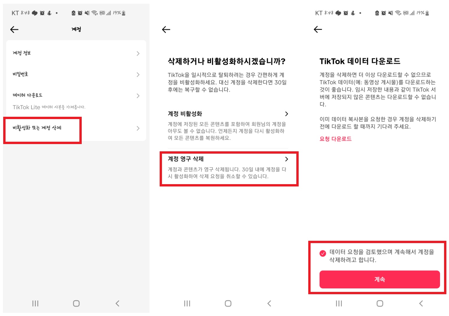틱톡 라이트 탈퇴 : 카카오톡 연동 가입시 계정 삭제 방법