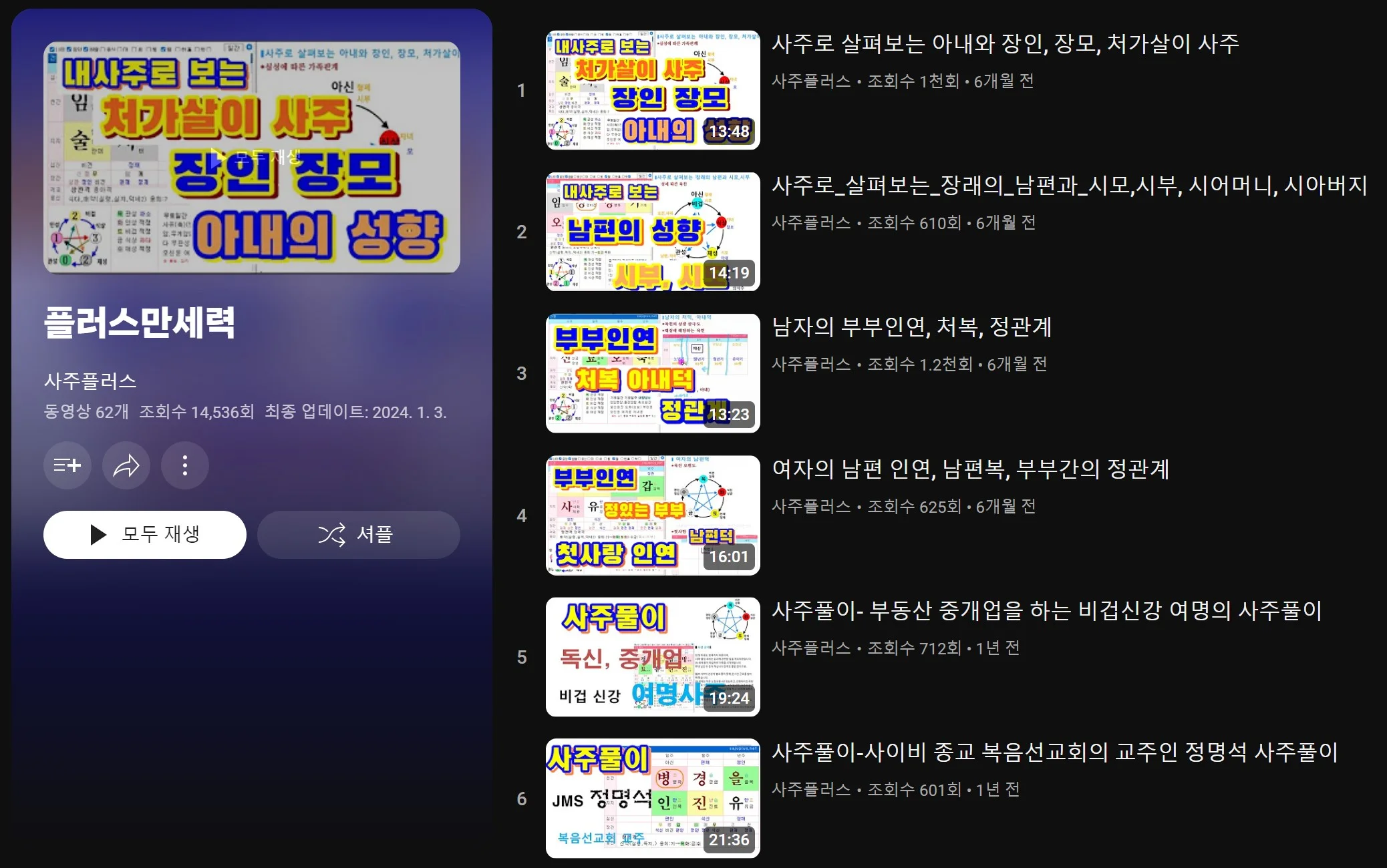 플러스만세력은 유튜브 채널을 통해 더 많은 정보를 제공합니다. 유튜브 채널에서는 사주 명리학에 대한 기본 개념부터 심화된 내용까지 다양한 주제를 다루며, 영상으로 쉽게 이해할 수 있도록 돕습니다.