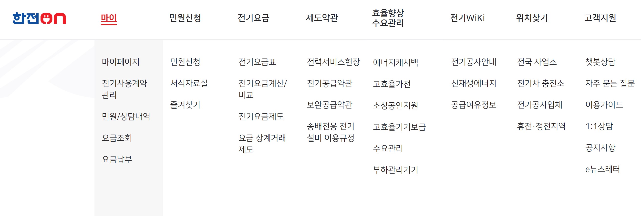 | 한전ON 홈페이지 바로가기 | 한전ON 회원가입 바로가기 |