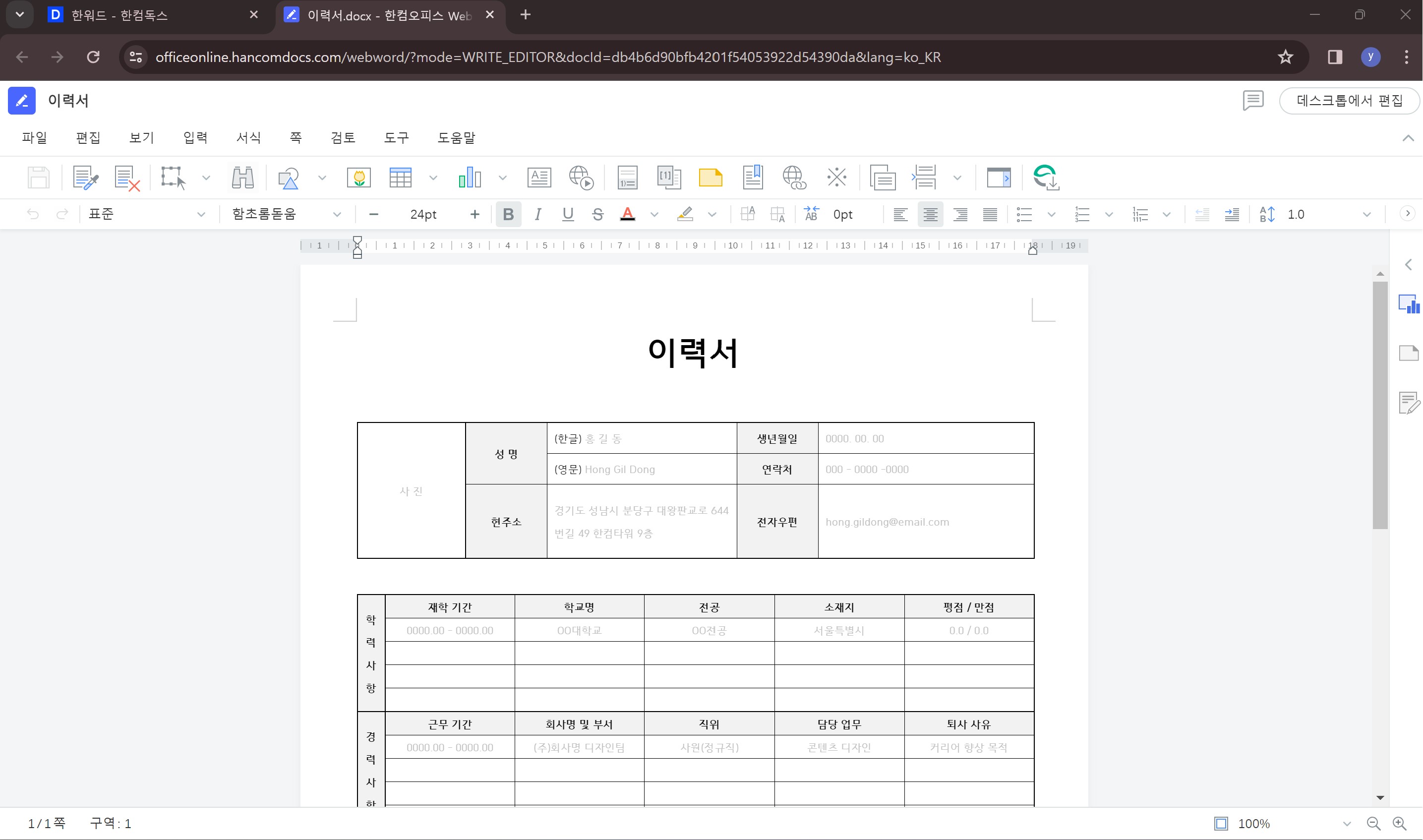 한컴독스는 한글과 컴퓨터에서 제공하는 클라우드 기반 웹 오피스 프로그램입니다.