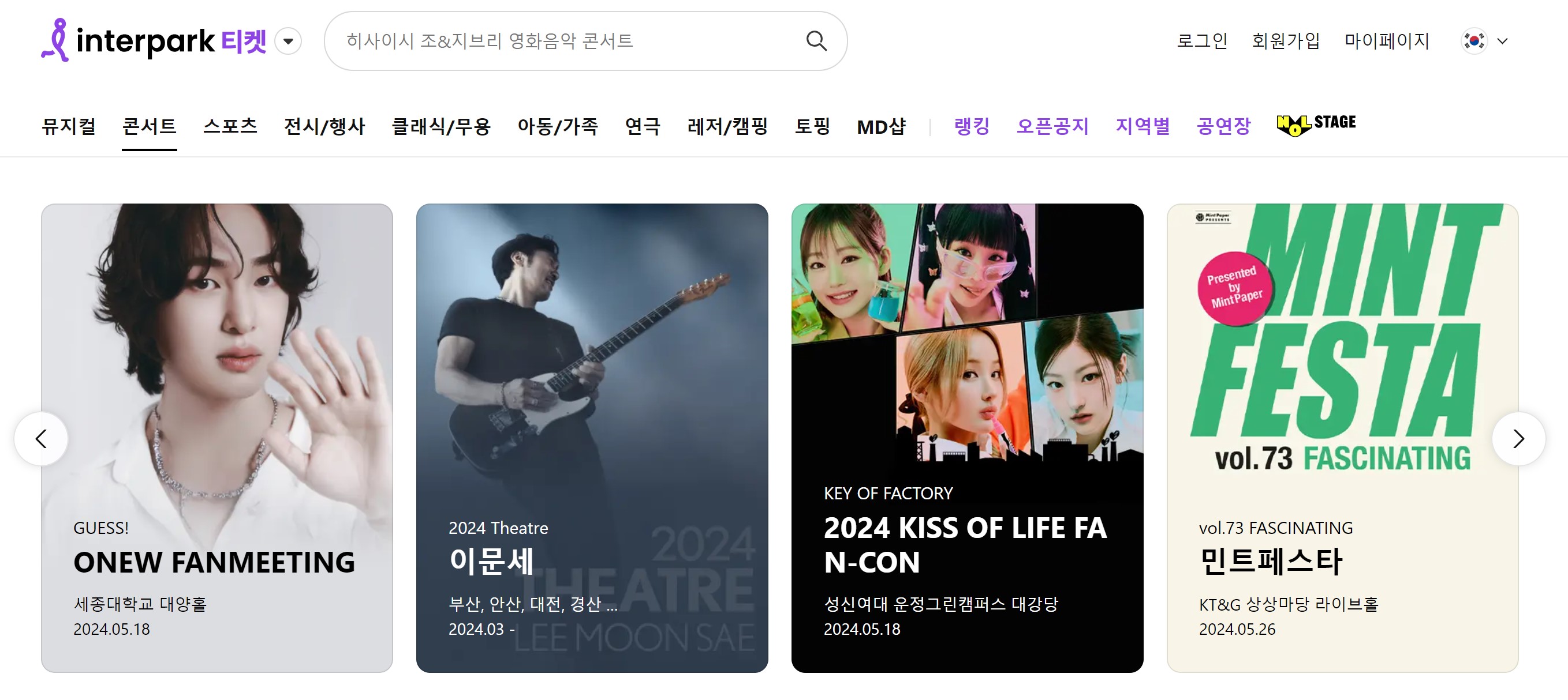 인터파크 티켓 홈페이지를 직접 검색하거나 하단에 바로가기 버튼을 클릭하여 인터파크에 접속하세요. 그런 다음, 콘서트 메뉴에서 2024 Theatre 이문세 콘서트 이미지를 클릭하면 됩니다.