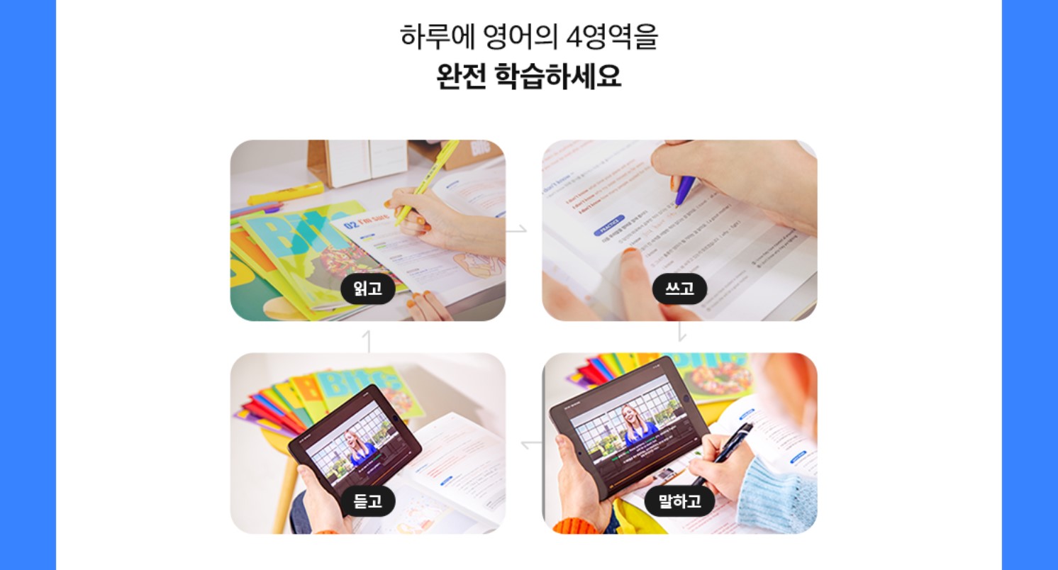 말하는 학습지는 2332명의 원어민과 대화를 통해 읽기, 쓰기 뿐만 아니라 듣기 말하기까지 익히는 완벽히 새로운 학습입니다. Bite의 완전 학습은 읽기, 쓰기, 듣기, 말하기를 모두 아우르는 방식으로 영어 회화를 정복하는데 도움이 됩니다.