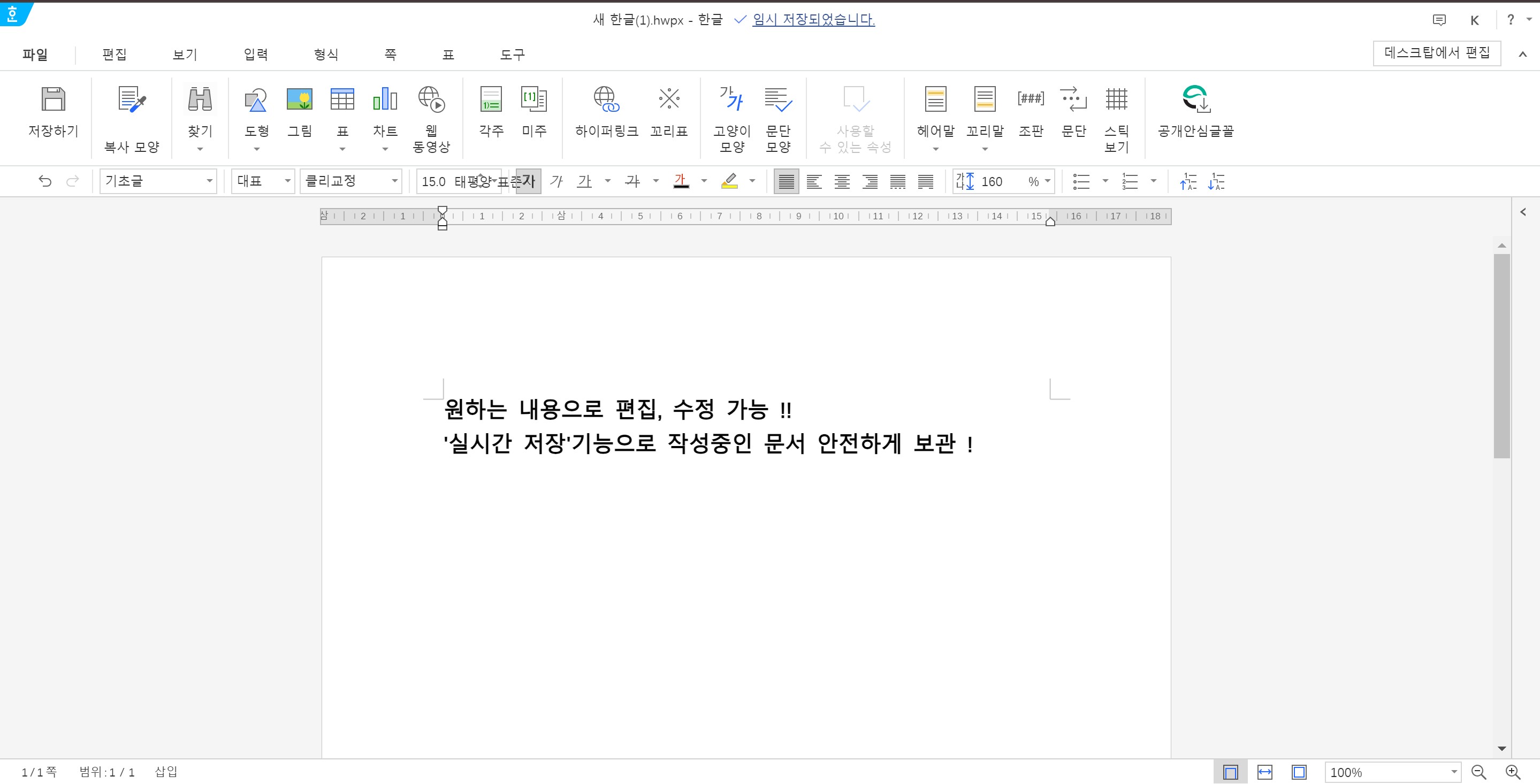 hwp파일뿐 아니라 최신 파일형식인 hwpx 파일도 한컴독스에서는 편집과 수정이 가능합니다.