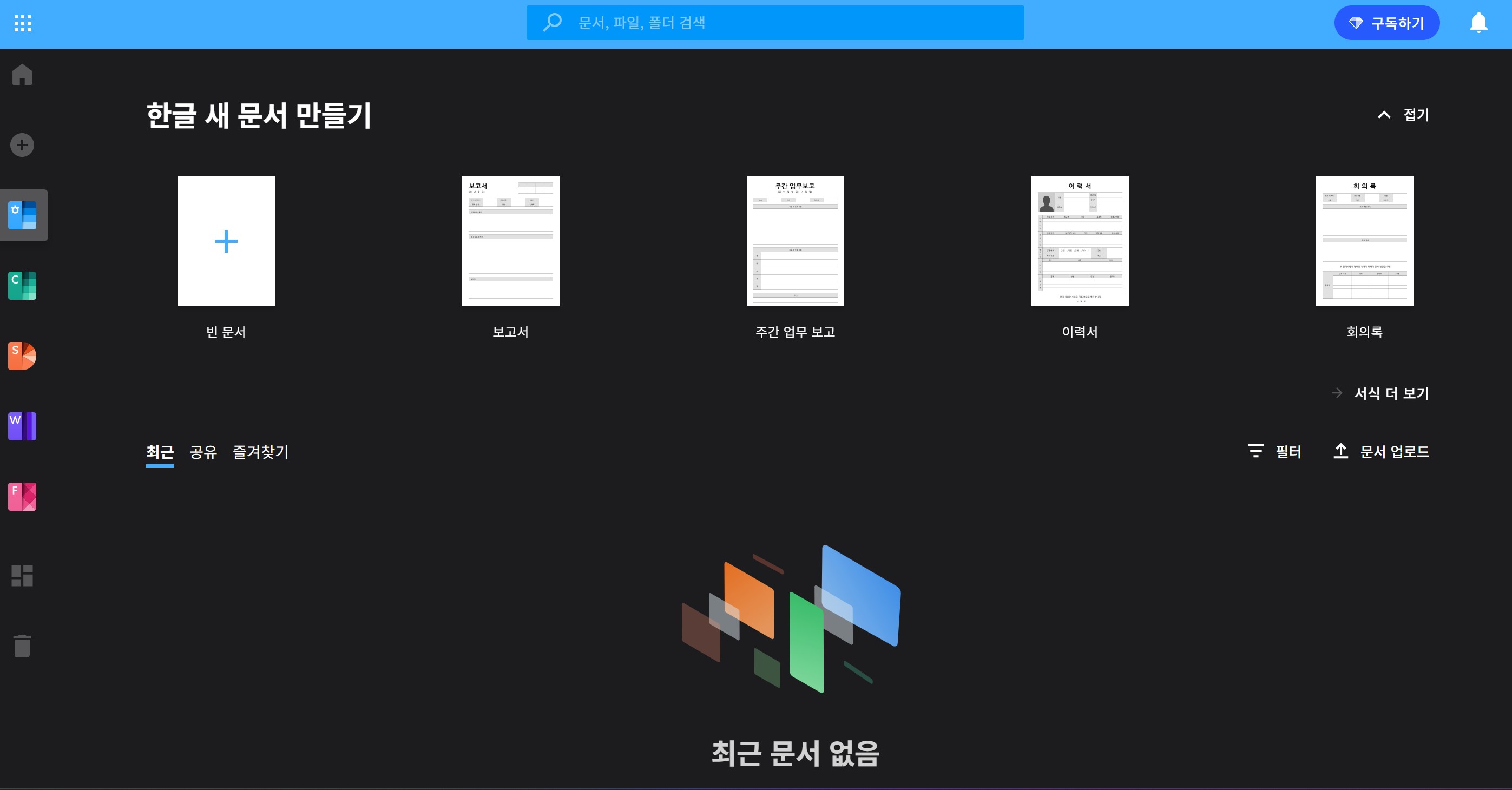 한컴독스는 한글과 컴퓨터에서 제공하는 한컴 오피스 구독서비스입니다.